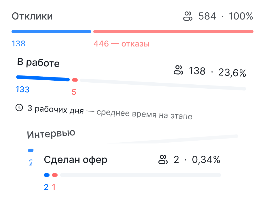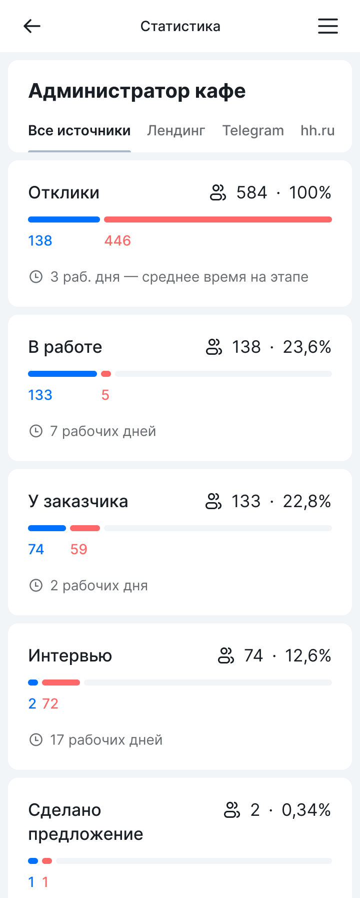 Информация по источникам, воронке, продвижению и среднему времени на этапах — все для оптимизации найма и работы рекрутера